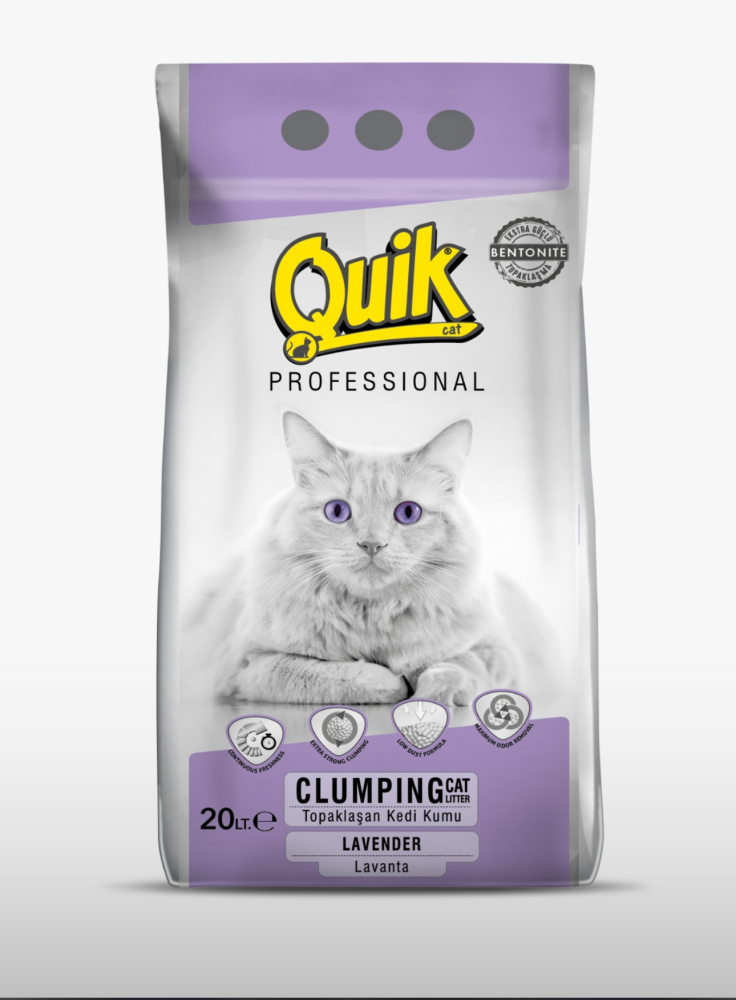 • يتميز رمل كويك للقطط برائحة لافندر بقدرة عالية على التكتل مما يجعل عملية تنظيف صندوق الفضلات سهلة وسريعة